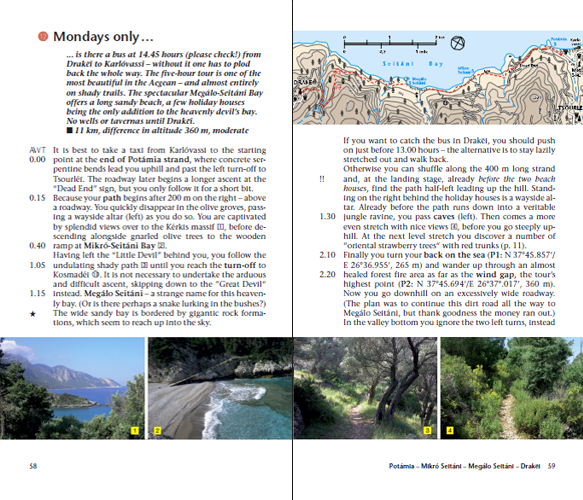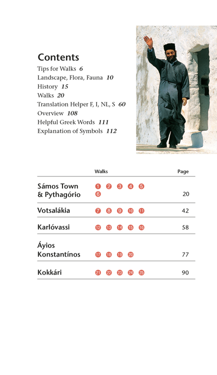 Particularly worthwhile is the north coast with wooded slopes and vineyards which continue to be criss-crossed by old mule tracks. But the destinations described in this book also include old monasteries and the archaeological sites around Pythagório.
